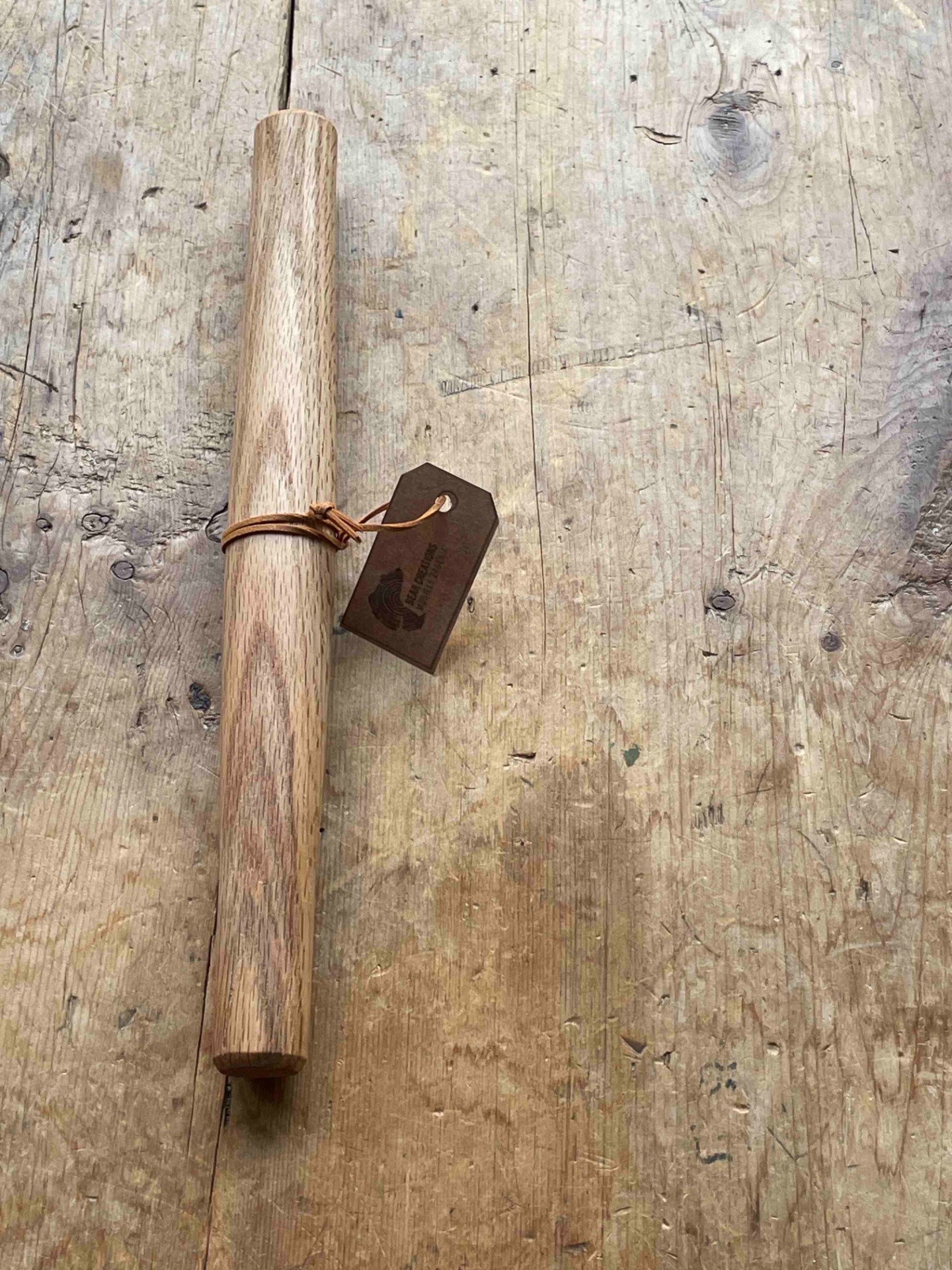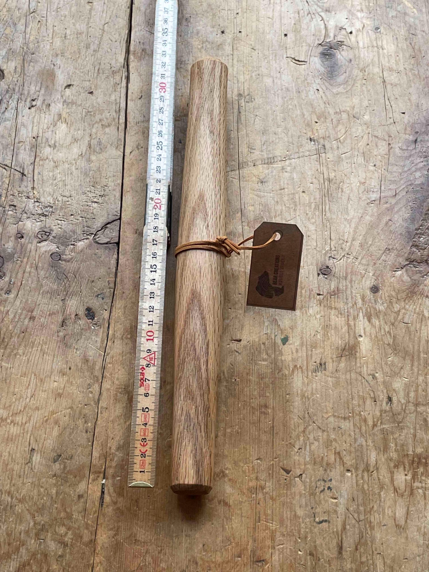 ambachtelijk gedraaide franse deegrol uit lokaal eiken hout (hout afkomstig uit Zandhoven )