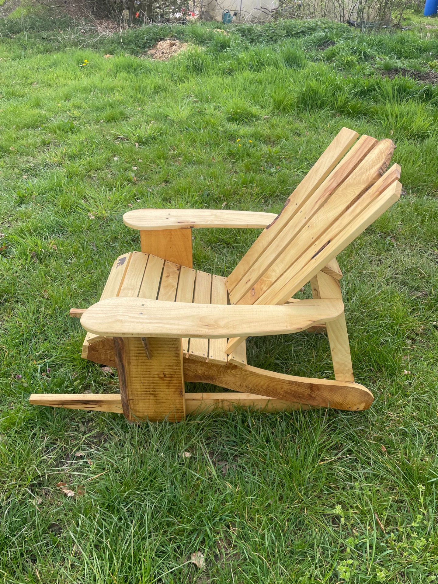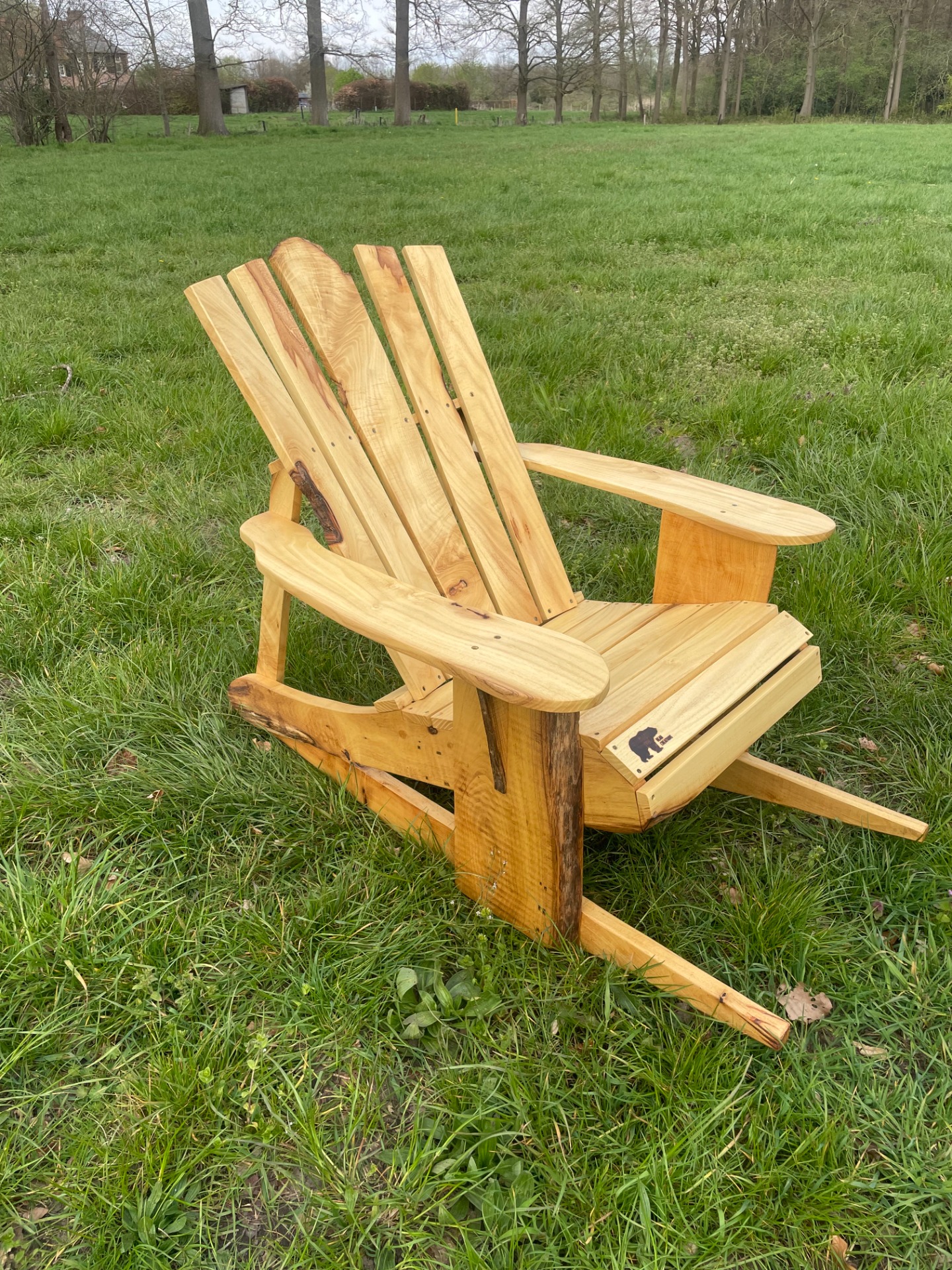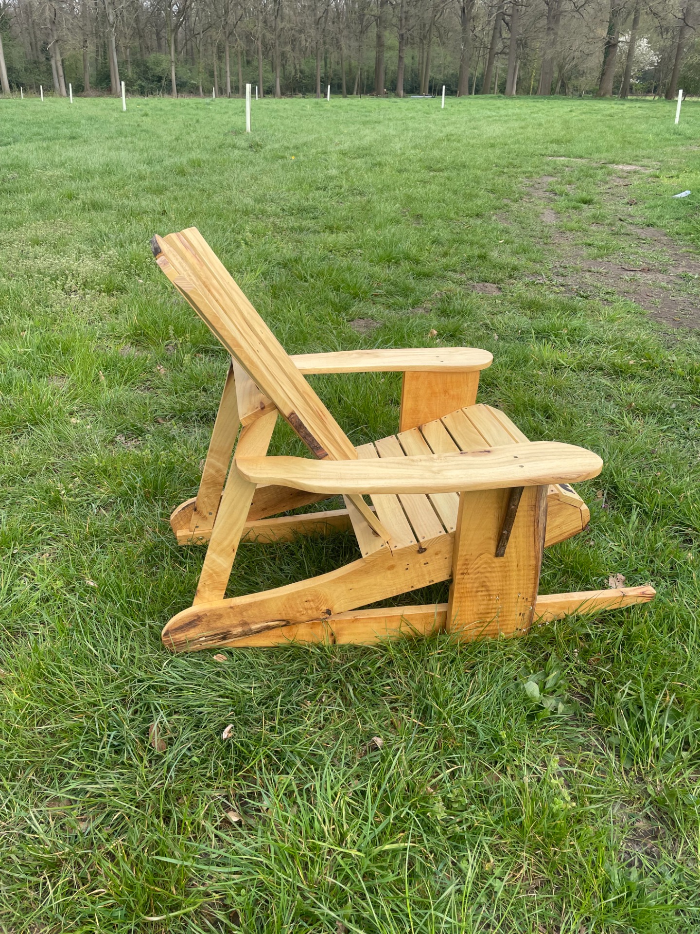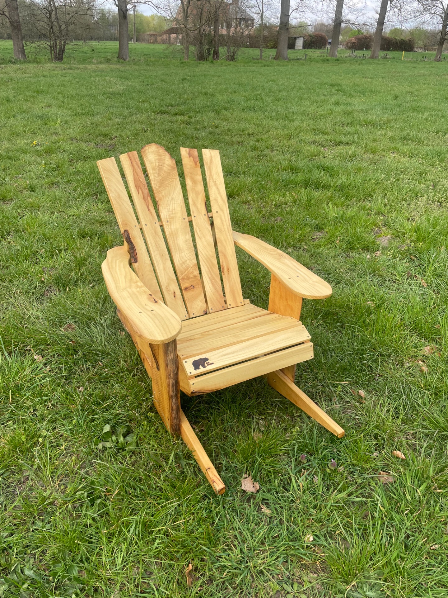 De schommelstoel versie van onze Bear Chair , lekker luieren op de porch of het terras in onze unieke rocking chair versie . Uit lokale robinia voor extra duurzaamheid , en lokaal hout . duurzamer wordt het niet .