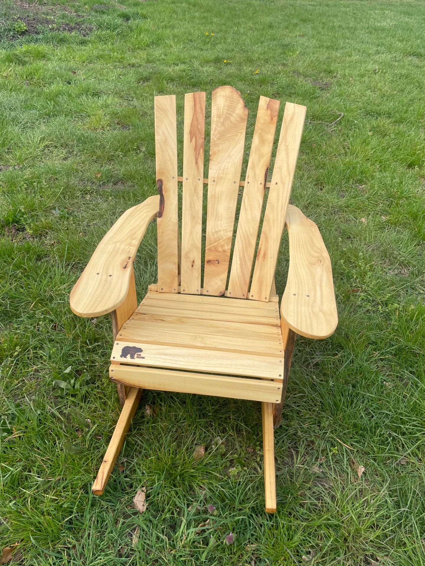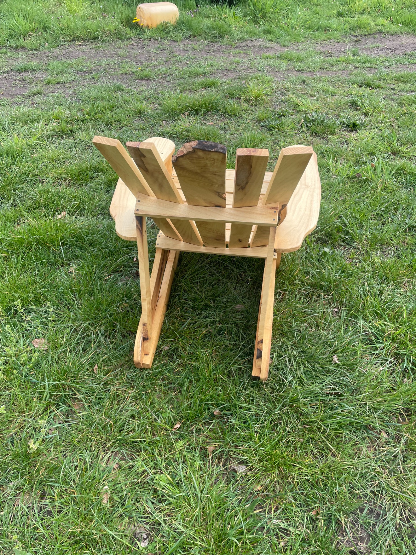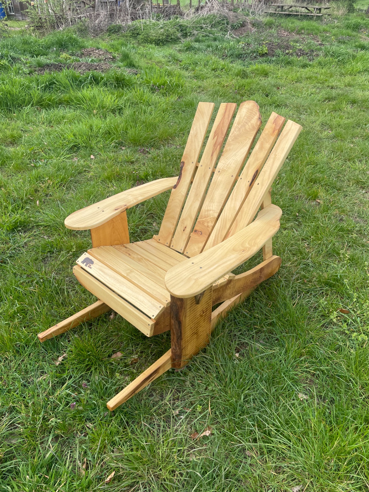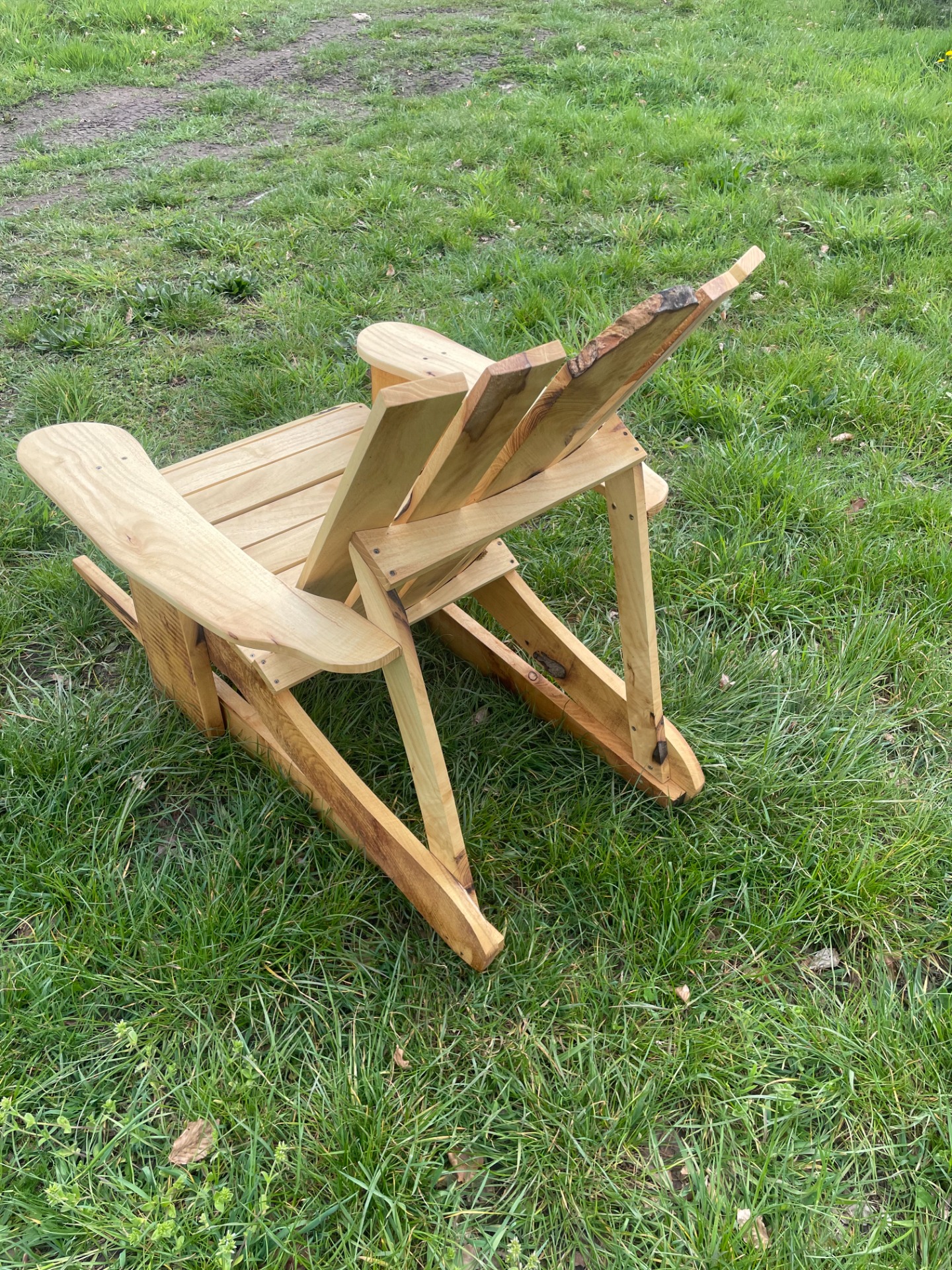 De schommelstoel versie van onze Bear Chair , lekker luieren op de porch of het terras in onze unieke rocking chair versie . Uit lokale robinia voor extra duurzaamheid , en lokaal hout . duurzamer wordt het niet .